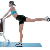 Al doilea exercitiu: Stau la o distanta mica de un scaun cu spatar, bratele sunt drepte, sprijinite de acesta. Cu piciorul drept usor indoit, ridic stangul in spatele meu, pana ce este paralel cu podeaua. Tin piciorul ridicat cinci secunde in cea mai inalta pozitie, apoi revin cu el pe podea. Repet aceeasi miscarae cu celalalt picior.